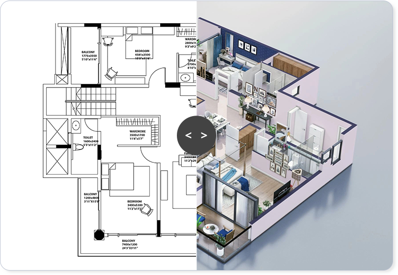 2D floor plans are now essential features in the real estate market. Present customers with a professional floorplan, showcasing house layout with textured floor and furniture.