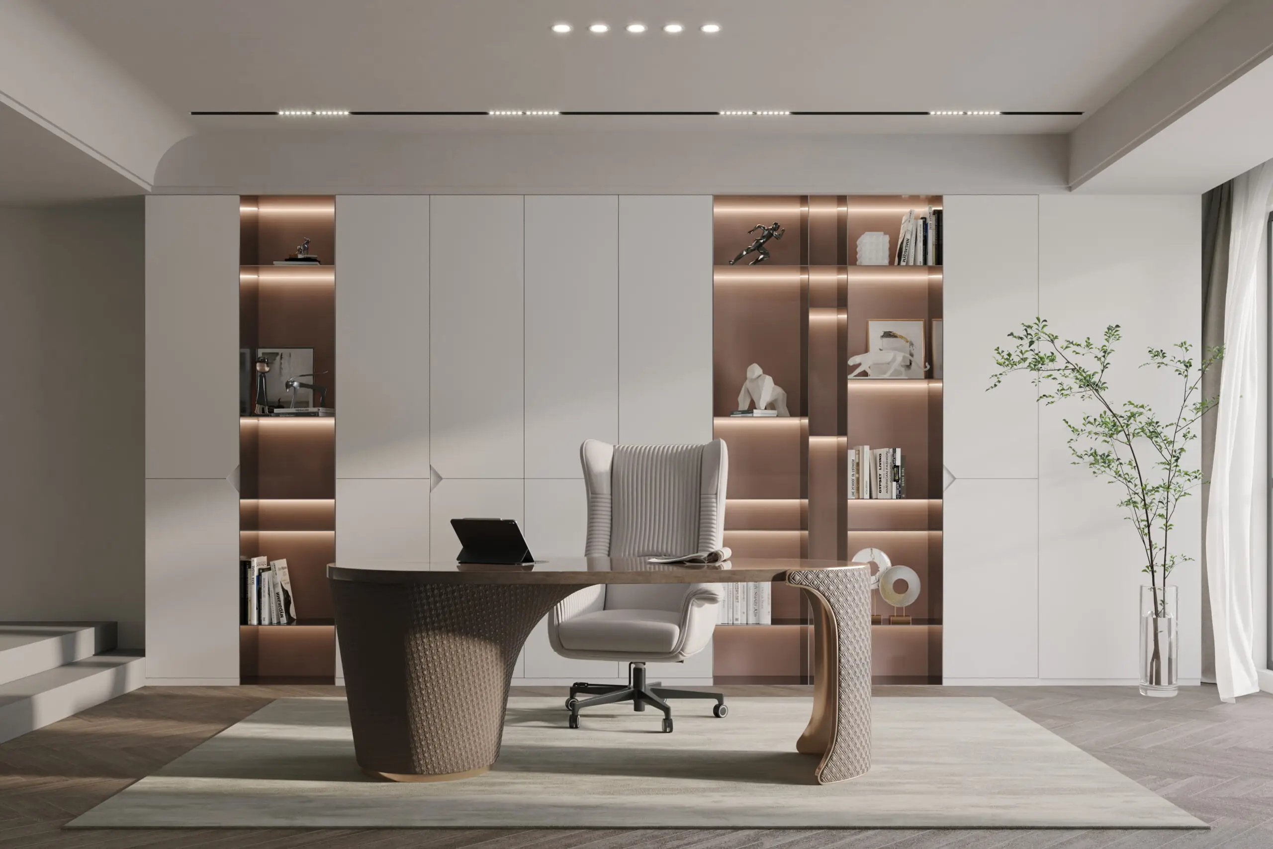Floor-to-ceiling study room bookcases with adjustable shelves accommodate books of all sizes. Glass-door models prevent dust and pests, while integrated LED lighting aids nighttime reading. Eco-friendly E0-grade panels ensure a safe, quiet workspace for focused productivity.