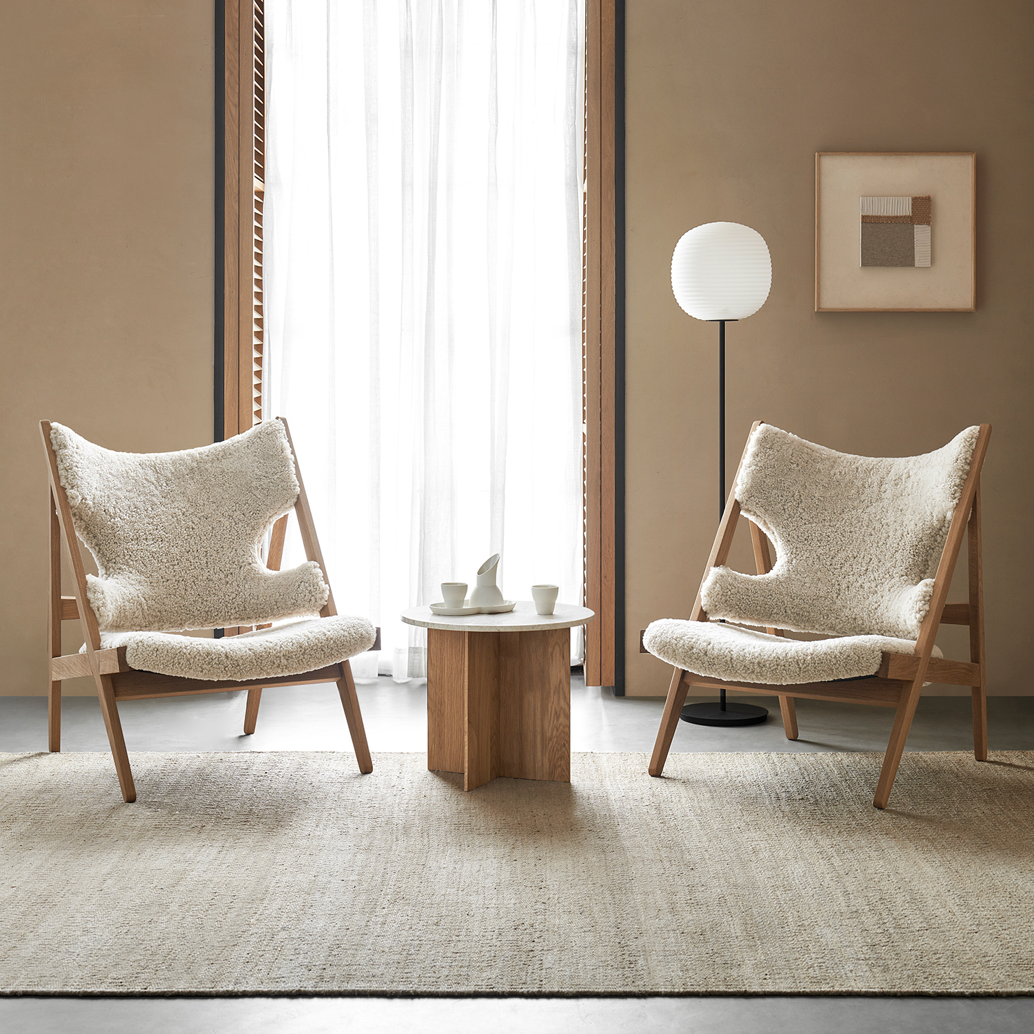 An ergonomic accent chair with curved backrest and solid wood frame offers all-day comfort. Paired with ottomans for reading nooks or lobbies, its neutral colors and clean lines complement any decor.